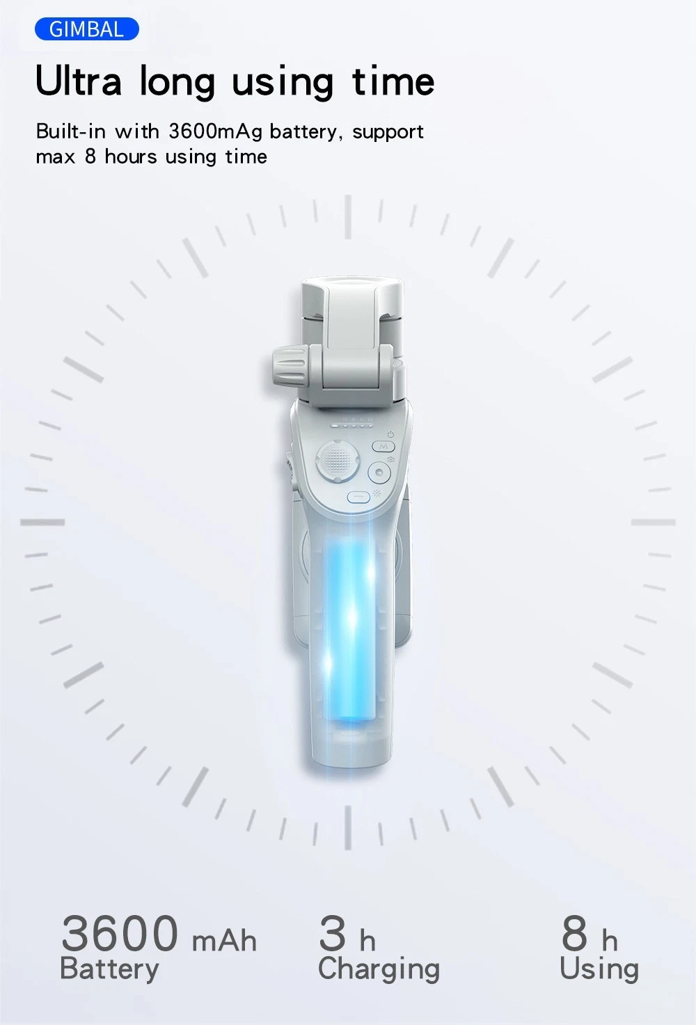 YESIDO Mobile Stabilizer 3-Axis Phone Gimbal Portable & Foldable, Slate Gray